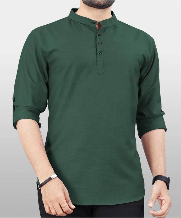 Shree Dutt Creation Men Solid Cotton Blend Straight Kurta (Dark Green)