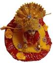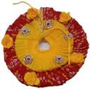 Buy this beautiful heavy design Rajasthani Bhandhej double frill dress for Bal Gopal ji / Laddu ji / Kanhaiya ji / Kishna ji / Thakur ji . These stylish and designer dresses are handcrafted with full devotion. Embellished with stones/pearls/resham work/beads, these poshaks which come in bright colours are the best buy for laddu gopalji. Kindly choose size carefully. Handmade - Crafted with Love in INDIA - Premium Quality