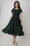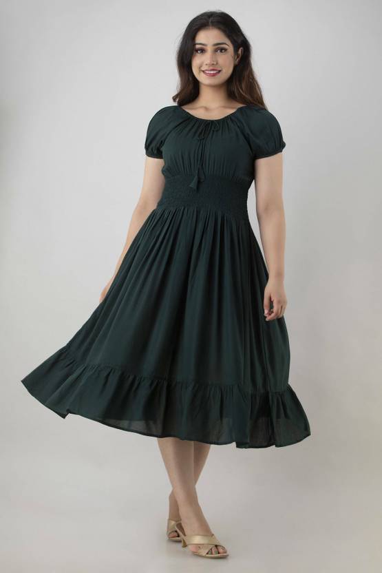 KANHA TEXTILES Women Solid Flared Kurta (Green)