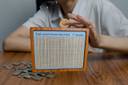 SAVINGS TRACKER: Wooden money box designed with a visual grid system to track savings progress towards ₹1,00,000 goal