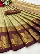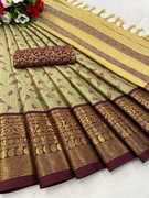 green pure cotton soft saree new2022 latest design branded fancy designer chit pallu paithani jamdani fancy beige orange cotton silk banarasi saree top model
