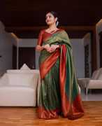 Construction Type :- Saree Fabric : Kanjivaram Pure Lichi SIlk , Blouse Fabric : Silk. Occasion :- Wedding, Party & Festive. Decorative Material :- Zari. Fabric :- Jacquard, Pure Silk. Sari Length :- 5.5m, Blouse Piece Length :- 0.8m