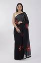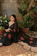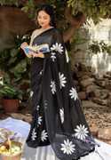 Kanjivaram Palace Floral Print Handloom Linen Saree (Black)