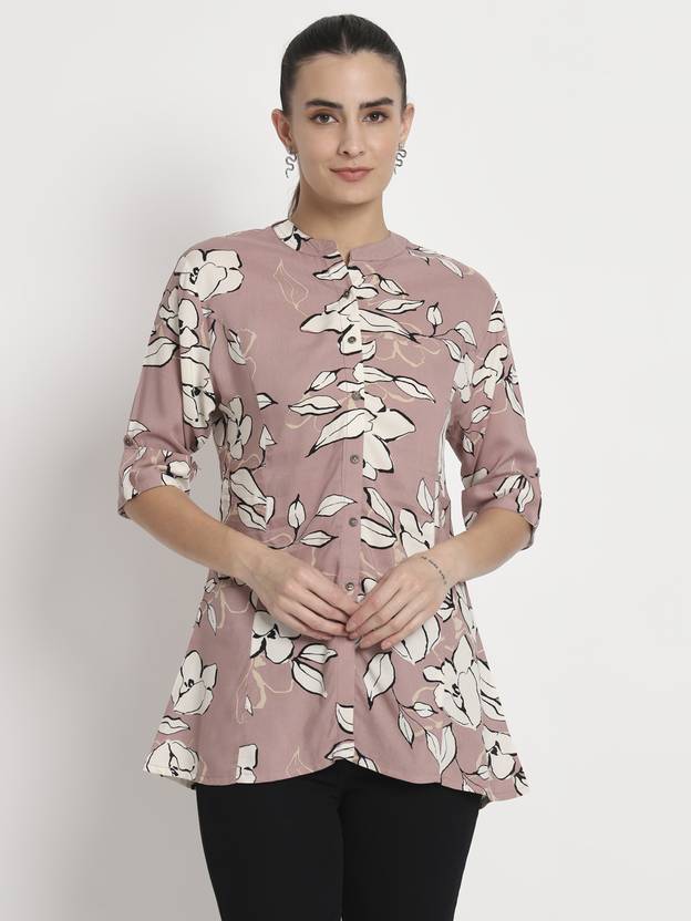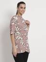 Kannan Casual Roll Up Sleeves Printed Women Brown, Pink Top