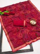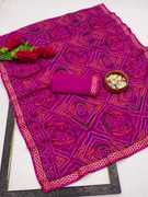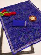 Kanooda Prints Printed Bandhani Georgette Saree (Blue)