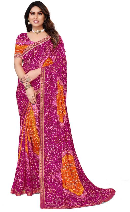 Kanooda Prints Printed Bandhani Georgette Saree (Multicolor)