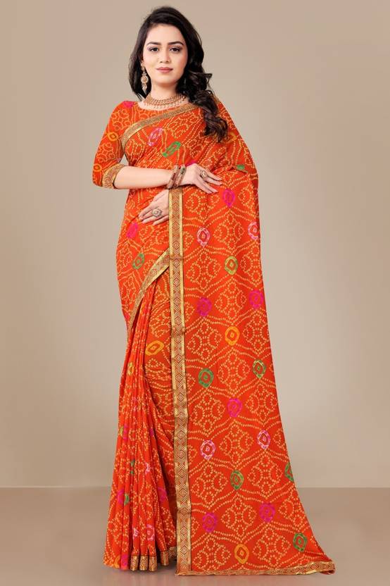 Kanooda Prints Printed Bandhani Georgette Saree (Light Green)