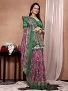 Kanooda Prints Printed Mysore Art Silk Saree (Pink)