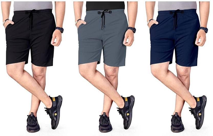 kanth fashion Pack of 3 Solid Men Multicolor Regular Shorts