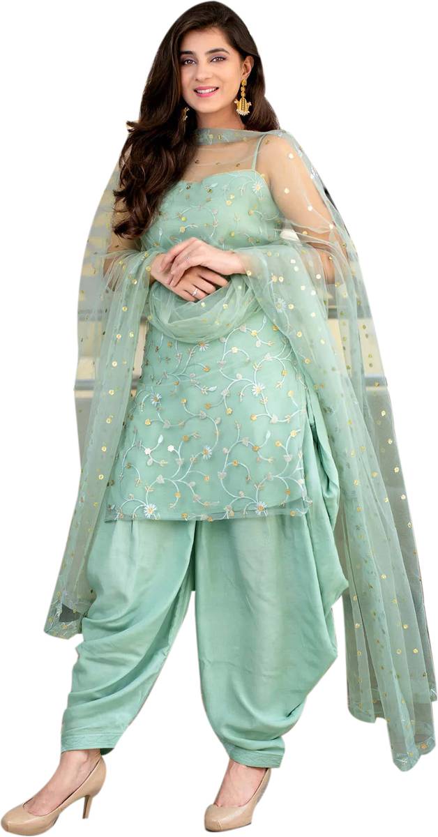 KAPANKU Net/Lace Embroidered Kurta & Patiyala Material