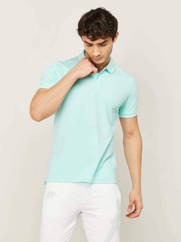 Kappa Solid Men Polo Neck Blue T-Shirt