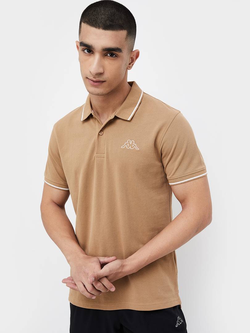 Kappa Solid Men Polo Neck Brown T-Shirt