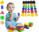 Plastic Intellectual Geometric Shape Matching Five Column Blocks Educational & Learning Toys Stimulate Your Child's Mind! Encourage your kids to think logically, move precisely, and play creatively! This kinetic wood stacking toy helps children develop both cognitive thinking and fine motor skills as they carefully place, rotate, and adjust the different shapes to make them all fit. Use these color-learning toys as an opportunity for learning shapes, introducing geometry, and building color and size recognition. just set it up for your little one to enjoy as a fun and engaging on-their-own activity. Features Stimulate Cognitive Thinking Develops Fine Motor Skills All-Natural Materials You can be sure this engaging toy will keep your children's bodies active and their minds curious and creative! Multi-Purpose Use This puzzle can be used in so many ways! Your toddler can enjoy stacking the blocks, learning about colors and shapes, and figuring out new ways to put the puzzle together. With its lightweight design, this small stacking toy also makes an excellent travel companion. Use it for on-the-road stacking or bring it along as a vacation companion. This wooden shape stacker is also easy for multiple children to use at once, making it a wonderful addition to day-cares and classrooms! Quality As a parent, you want the best for your child. That is why our line of wooden educational puzzles is all-natural, non-toxic, BPA-free, ASTM F 963 certified, and child-safe. Beautifully crafted from the highest quality materials, our geometrical stacker is safe, durable, and made to last for many years of adventures with your family! Gift Ideas In search of a unique gift this holiday season Wooden educational games are a wonderful gift that children will be thrilled to receive!