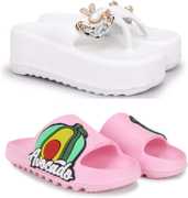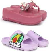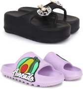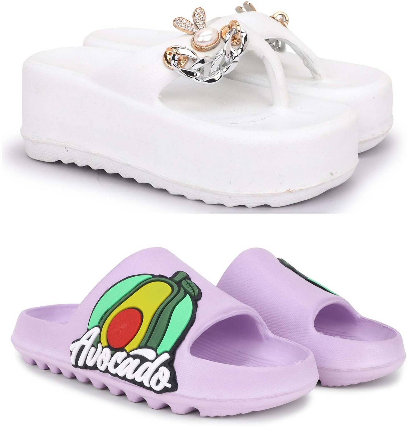 KAPYANSH Women Flip Flops (White, Purple , 3)