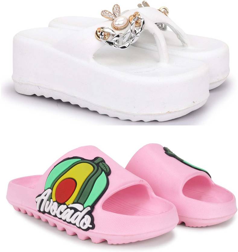 KAPYANSH Women Flip Flops (White, Pink , 3)