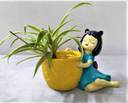 karari small cute basket girl succulent resin planter Plant Container Set Decorative Showpiece - 8 cm (Clay, Multicolor)