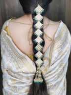 Karatcart Diamond Shape Gold Plated Green Tumble Kundan Bridal Wedding Hair Braid Choti Braid Extension (Gold)