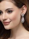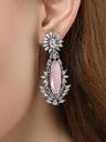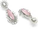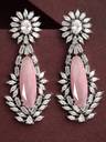 Silver Plated Big Pink Cubic Zirconia Studded Drop Earrings for Women
