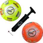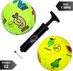 KARBD Hand Stitch PVC Small Kids Soccer Ball Combo with Air Pump & Needle Pin 12 Panel Football - Size: 1 (Kids, Pack of 2, Orange, Green)