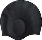 KARBD Silicone Swimming Cap with Ear & Hair Protection Unisex Swim Pool Head Cap Swimming Cap (Black, Pack of 1)
