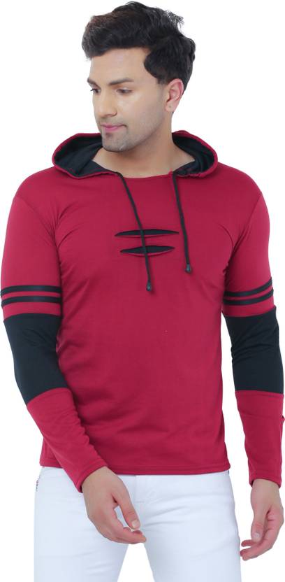 Karleep Solid Men Hooded Neck Maroon T-Shirt
