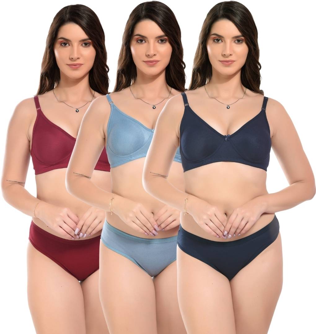 Karly Bra & Panty Set Solid Multicolor Lingerie Set
