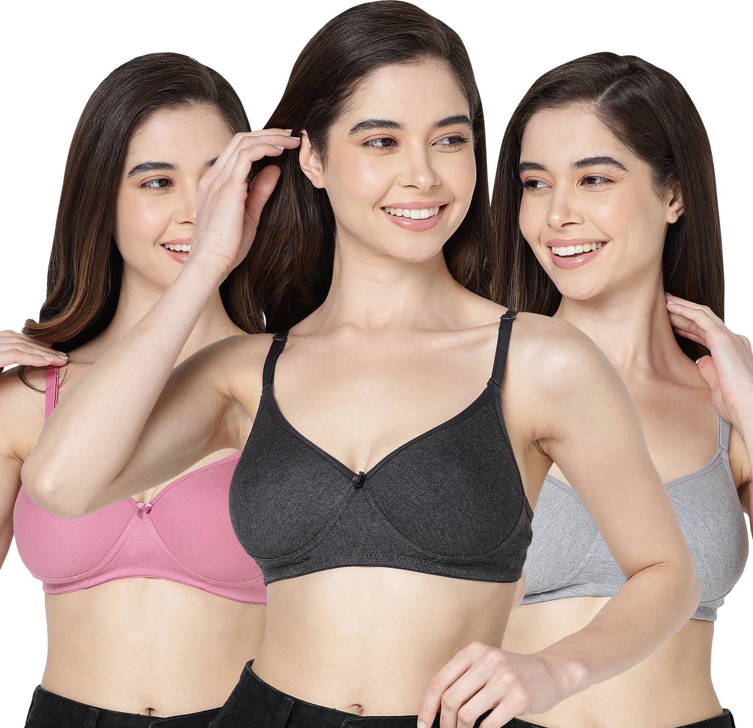 Designed for the modern woman seeking both style and support, the bras in this set boast a full-coverage design. Featuring a three-hook and eye back closure for a secure fit, movable straps for customisable wear, and soft elastic for added comfort, these bras offer a suitable blend of functionality and fashion. And, the seamless, unwired, and unpadded construction ensures a natural shape and silhouette, allowing you to move with confidence and grace.