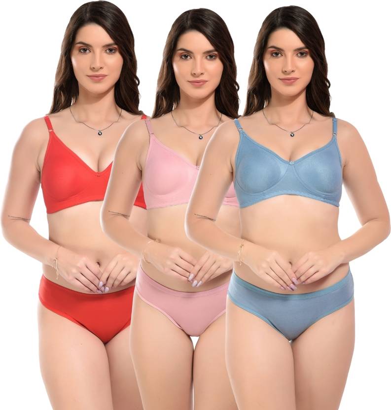 Karly Bra & Panty Set Solid Red, Pink, Blue Lingerie Set