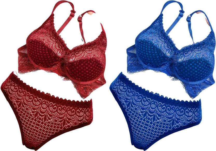 Bridal and honeymoon lingerie sets, beach wear lingerie sets, and swimwear bra panty sets are all made of very comfortable, and breathable 100% imported fabric to offer you the luxurious look you deserve. (1) Material: Honeymoon gorgeous Lingerie Set in Lace and Cotton. (2) Closure: 3-hook and eye back closure, movable straps, soft elastic and straps. Full coverage, seamless, unwired, and unpadded bra and panty set are the three different types of bras.