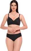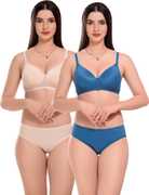 Owing to its thoughtful design, the T-shirt bra in this set offers full coverage cups, preventing any top or side spillage for a seamless look under clothing. The seamless cups provide a smooth finish, enhancing your silhouette when wearing fitted tops. Moreover, adjustable straps allow for a customised, snug fit, ensuring optimal comfort. Also, the delicate bow at the centre adds a touch of femininity and embellishment to the ensemble. And, this bra features hook and eye enclosures for added support without compromising on style. Plus, the non-wired construction ensures high comfort without sacrificing support.