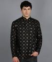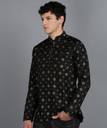 Men Printed Cotton Blend Straight Kurta (Black, Gold)