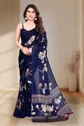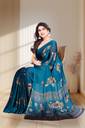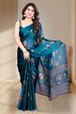 Karnav Fashion Floral Print Bollywood Chiffon Saree (Blue)