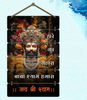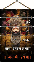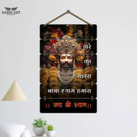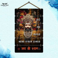 Featuring a carved depiction of Baba Khatu Shyam Ji at the centre, this wall hanging presents a spiritual focal point for any space. Panels positioned above and below the central figure carry religious sayings that convey hope and encouragement. The arrangement highlights both the image and the text without overcrowding, creating a balanced display that inspires reflection and devotion.