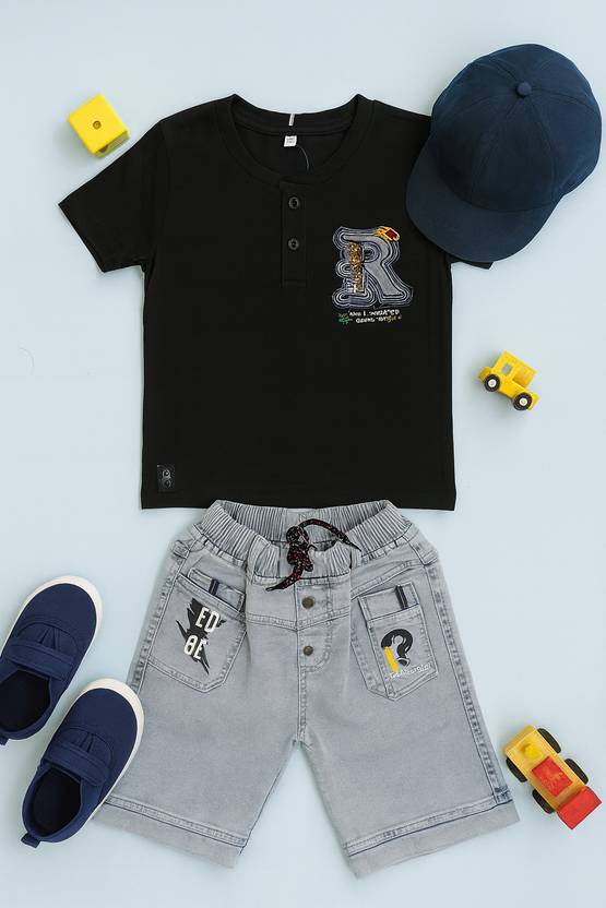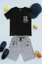 Dress your little one in style and comfort with this boy�s 2-piece summer casual outfit. The Short Sleeve Black Pure Cotton T-shirt features with Graphic Print and the matching cotton Grey shorts with 2 pockets come with playful printed details, an elastic waistband. Perfect for Festive, Party wear, and everyday look. Designed for both comfort and durability.