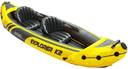 The Intex Explorer K2 Kayak is sporty and fun with a streamlined design for easy paddling. The bright yellow color and sporty graphics makes the kayak highly visible in the water. Great for experiencing lakes and mild rivers with a friend, this Sports Series kayak is perfect for two adults. Lightweight and compact, this kayak is a snap to assemble, and allows you to take the fun of kayaking wherever you go. Made with rugged vinyl construction, this sturdy kayak has an inflatable I-beam floor for comfort and rigidity. A removable skeg provides directional stability, while two adjustable, inflatable seats with backrests are included for comfort. Quick inflating or deflating is a breeze with a Boston valve on each side. A grab line and grab handle at each end is provided for your convenience, as well as a U.S. Coast Guard I.D., and a repair patch kit. The Explorer K2 Kayak provides added accessories including: two 86”aluminum oars and an Intex high-output pump for easy inflation and deflation.