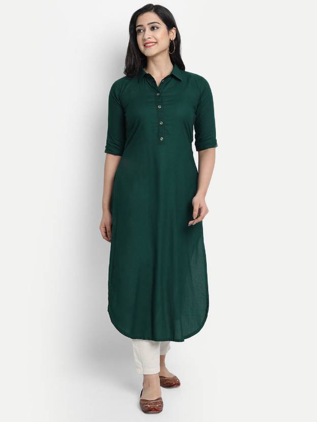 Nitimatta Women Solid Straight Kurta (Green)
