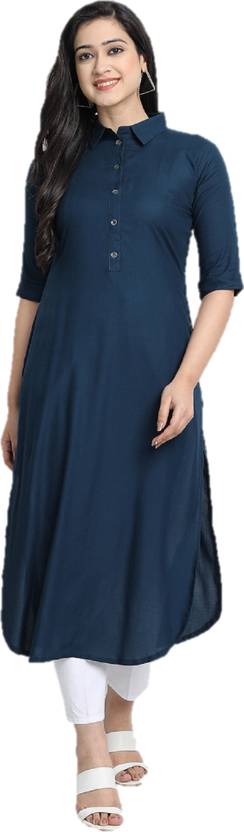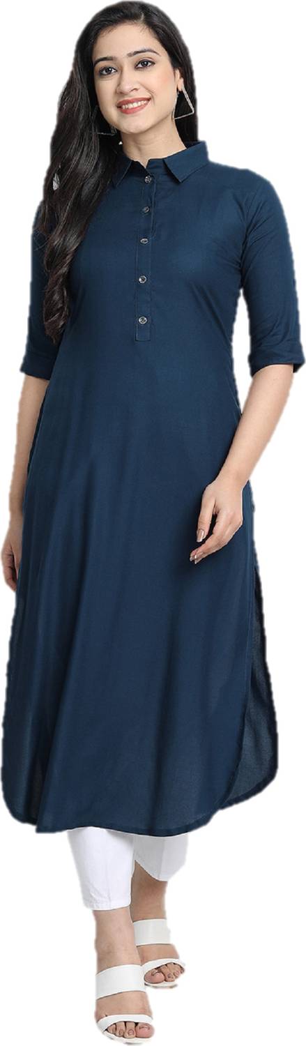 Kurta Fabric :- Rayon || Wash-Care :- Hand-wash. || Sleeve Length :- 3/4 Sleeves || Shape :- Straight || Neck :- Shirt Collar.