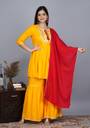 Elevate your ethnic wardrobe with this elegant women’s kurta sharara set with dupatta. Crafted from soft, breathable fabric, this outfit is perfect for festive occasions, weddings, parties, and traditional events. The kurta features beautiful embroidery on the neckline, paired with a stylish flared sharara and a matching dupatta with subtle prints. Designed for comfort and style, this ensemble adds grace to your ethnic collection.
