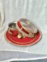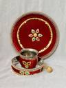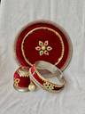 1 Pooja Thali with Red Velvet Base, 1 Matching Lota, 1 Matching Channi, Decorative Golden Lace,