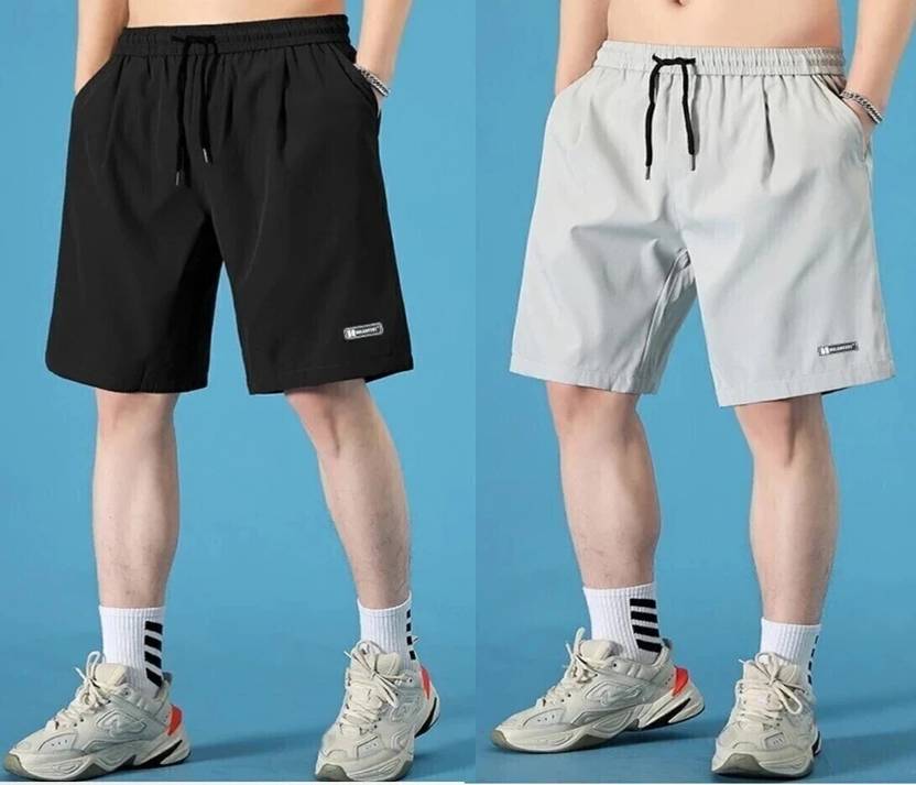 Pack of 2 Solid Men's Sports Shorts – Black & Grey | Comfortable Activewear for Gym, Running & Daily Use