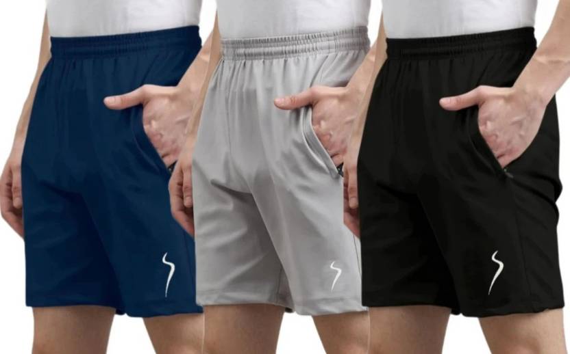 BTMZ Solid Men Black, Grey, Dark Blue Sports Shorts, Gym Shorts, Regular Shorts, Running Shorts, Basic Shorts, Baggy Shorts