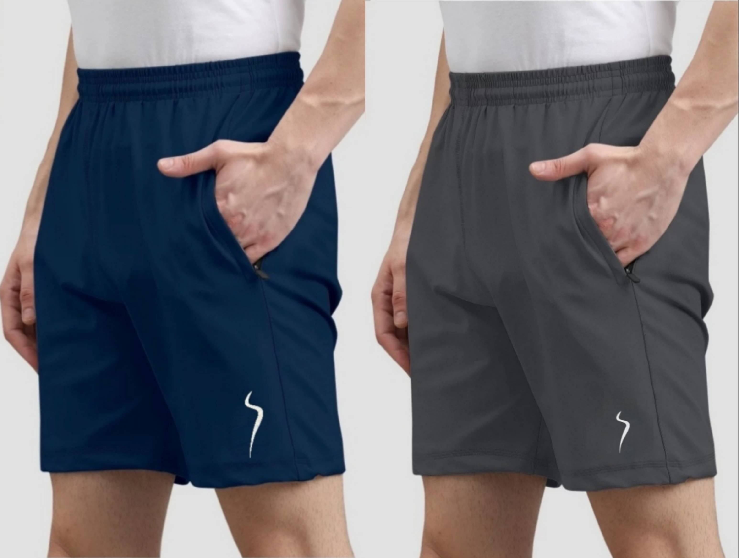 HouseOfCommon Solid Men Dark Blue, Dark Grey Sports Shorts