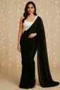 Style: Solid/Plain Lycra Saree, Saree Colour: Black, Blouse Colour: White, Saree Fabric: Lycra, Blouse Fabric: Lycra, Saree Length: 5.5 mtr, Blouse Length: 0.8 mtr, Saree Pattern: Plain Saree, Season: Any, Occasion: Wedding, Festival, Bridal, Party, Causal, Contains: Single Saree with Unstitched Blouse Piece