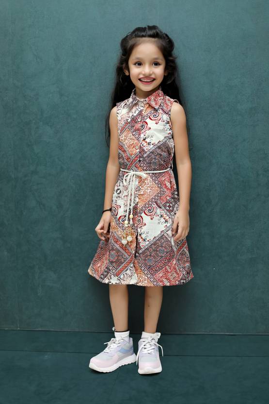 KASASKA Indi Girls Midi/Knee Length Casual Dress (Multicolor, Sleeveless)