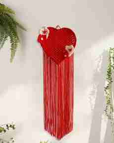 Kasba Macrame Wall Hanging | Heart Shape (30 inch X 11 inch, Red)