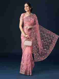 Tikhi Imli Embroidered Bollywood Net Saree Pink