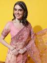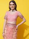 The blouse worn by the model might be for modelling purpose only. Check the image of the blouse piece to understand how the actual blouse piece looks like.