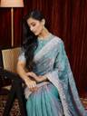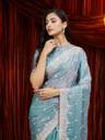Embroidered Bollywood Silk Blend Saree (Blue)