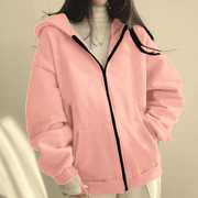 this Women Solid Full Sleeve Hooded Neck Sweatshirt. Crafted from premium fleece fabric, it offers ultimate comfort, softness, and warmth throughout the day. Designed with a front zipper closure, it allows easy wear and adjustable ventilation, making it perfect for all-day use. The hooded neck design adds an extra layer of protection against cold winds, while giving you a trendy, sporty look.