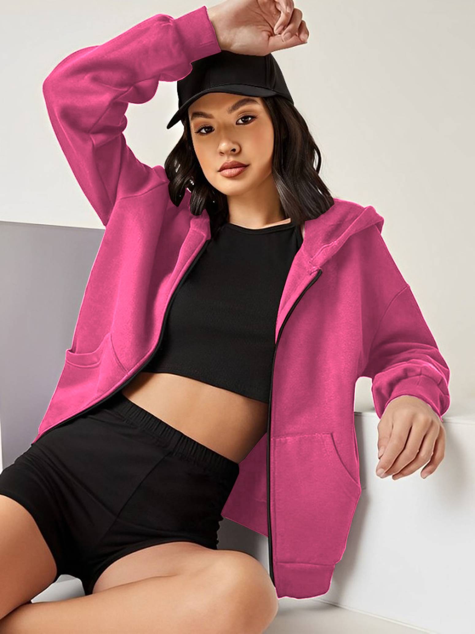 this Women Solid Full Sleeve Hooded Neck Sweatshirt. Crafted from premium fleece fabric, it offers ultimate comfort, softness, and warmth throughout the day. Designed with a front zipper closure, it allows easy wear and adjustable ventilation, making it perfect for all-day use. The hooded neck design adds an extra layer of protection against cold winds, while giving you a trendy, sporty look. This sweatshirt pairs effortlessly with jeans, joggers, or casual trousers — ideal for outings, travel, lounging, or college wear. Its regular fit and neat stitching ensure both style and durability. Whether you’re heading out for a casual walk or relaxing indoors, this winter essential keeps you cozy without compromising fashion. Available in multiple colors to match your personal style, it’s a must-have addition to your winter wardrobe. Upgrade your cold-weather collection with this stylish and functional hoodie sweatshirt that blends warmth, comfort, and fashion in one versatile piece.